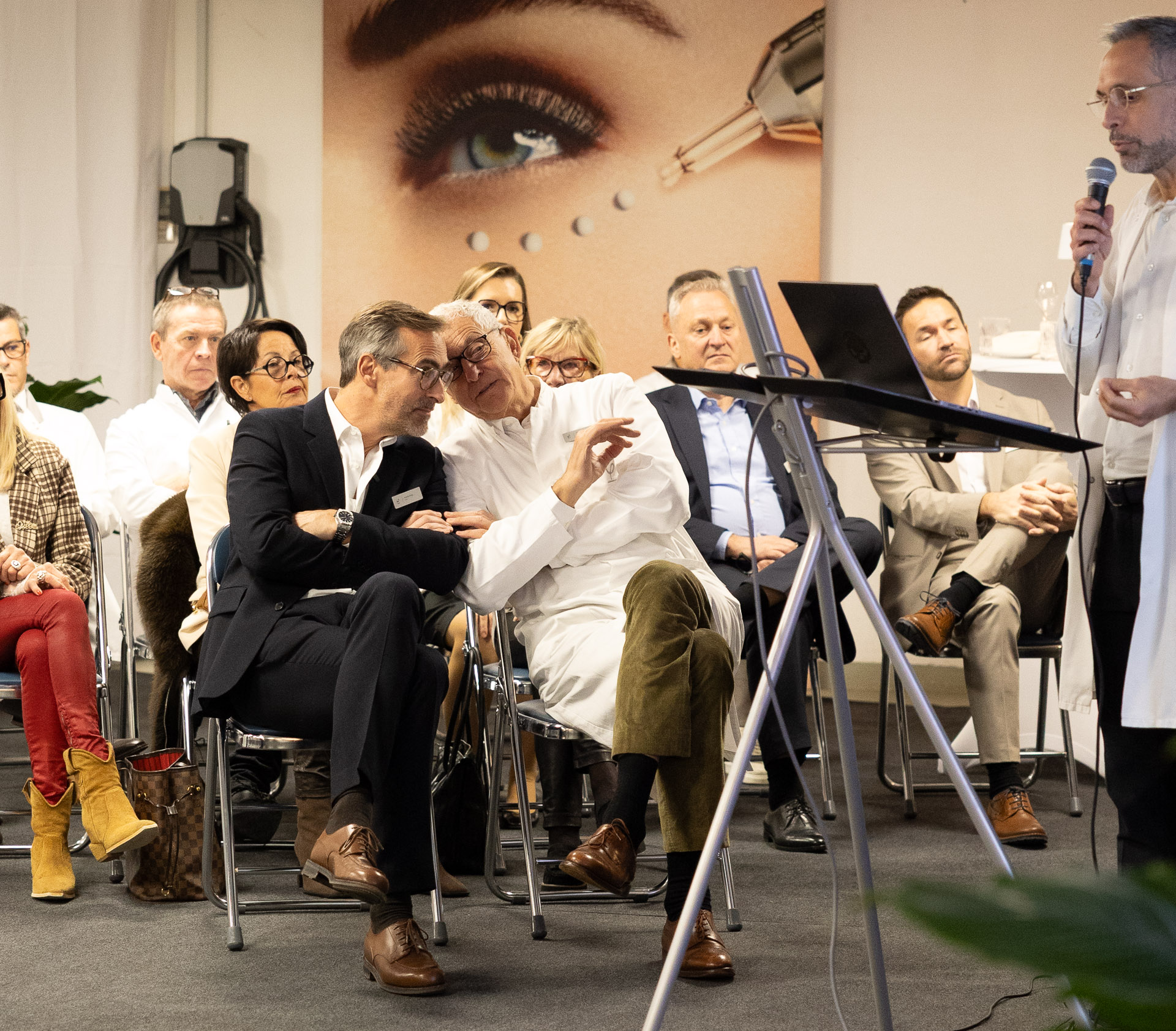 Le Dr Michel Pfulg, fondateur de Laclinic-Montreux, y était également présent pour présenter l’équipe de professionnels qu’il a sélectionnée, aux côtés de son fils, Fabrice Pfulg, directeur de l’établissement. C’est Fabrice Pfulg qui a ouvert les conférences par un mot de bienvenue, en présentant les médecins un par un.